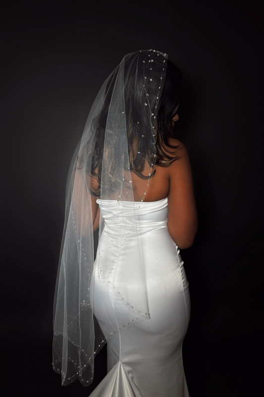 Veils this delicate can’t be rushed. Small-batch craftsmanship lets us hand-place every detail with the care your day deserves. Each veil drapes softly, moves beautifully, and photographs with effortless elegance.