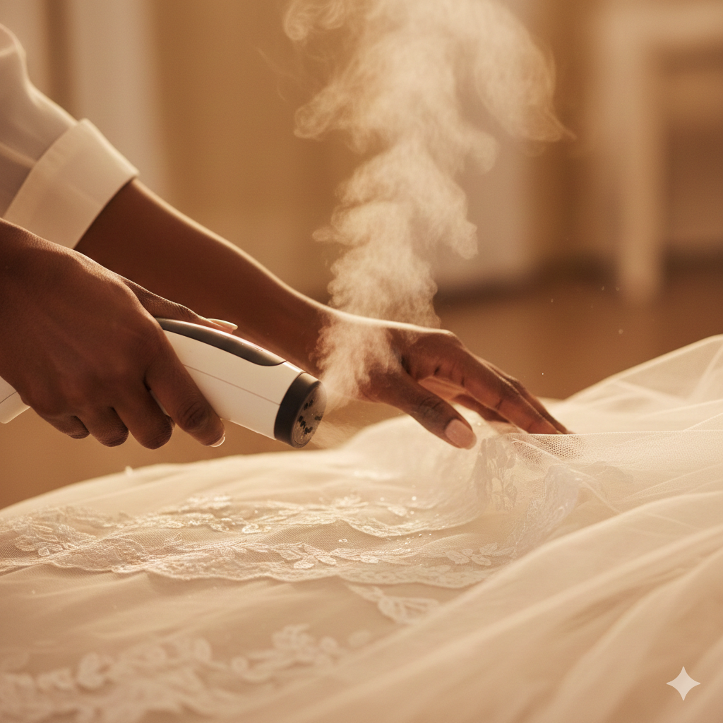 Before shipping, every veil is inspected for balance and finish, then lightly steamed so it arrives ready to wear.