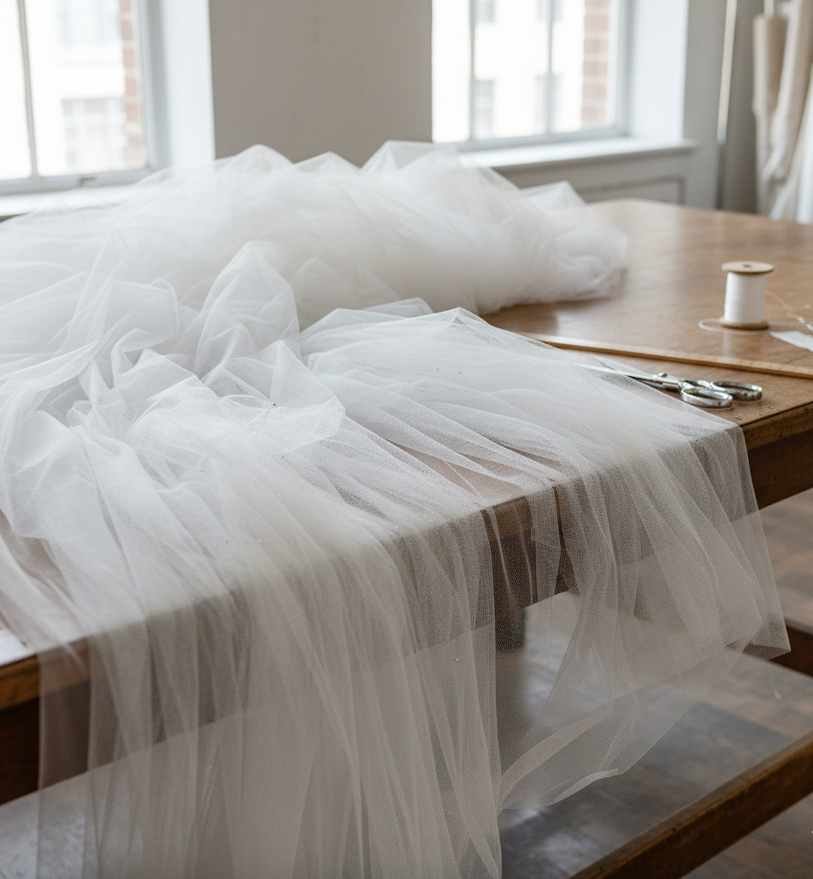 Every veil begins with Italian tulle selected for its softness, structure, transparency, and the way it photographs.
