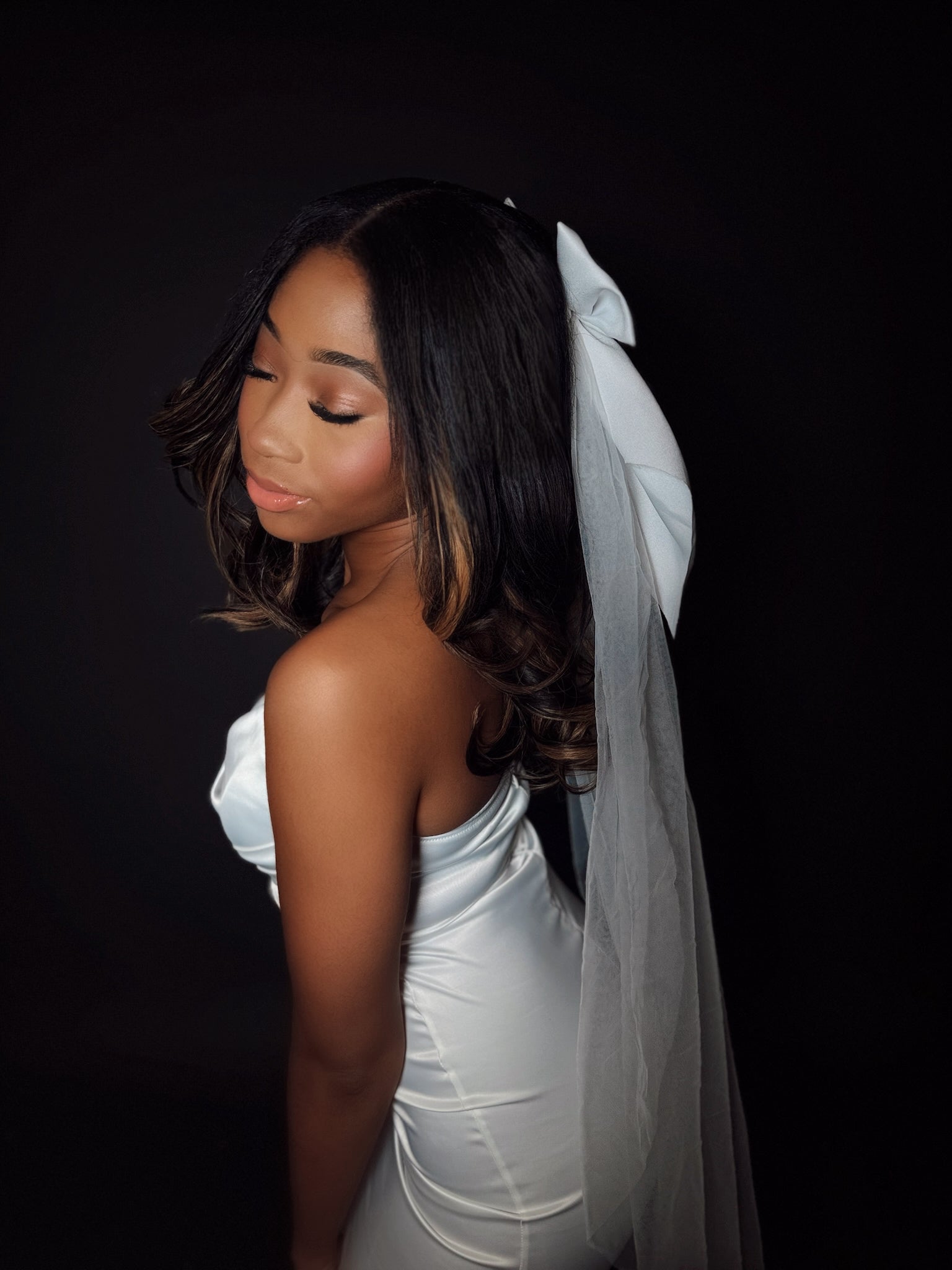 The Scarlett Bow Veil is a testament to refined femininity, where the drama of an oversized bow meets the weightless drape of our signature Italian tulle. Designed for the bride who embraces romance, Scarlett flows effortlessly. A statement of playful sophistication, with just the right touch of coquette allure. Perfect for all bridal events.
